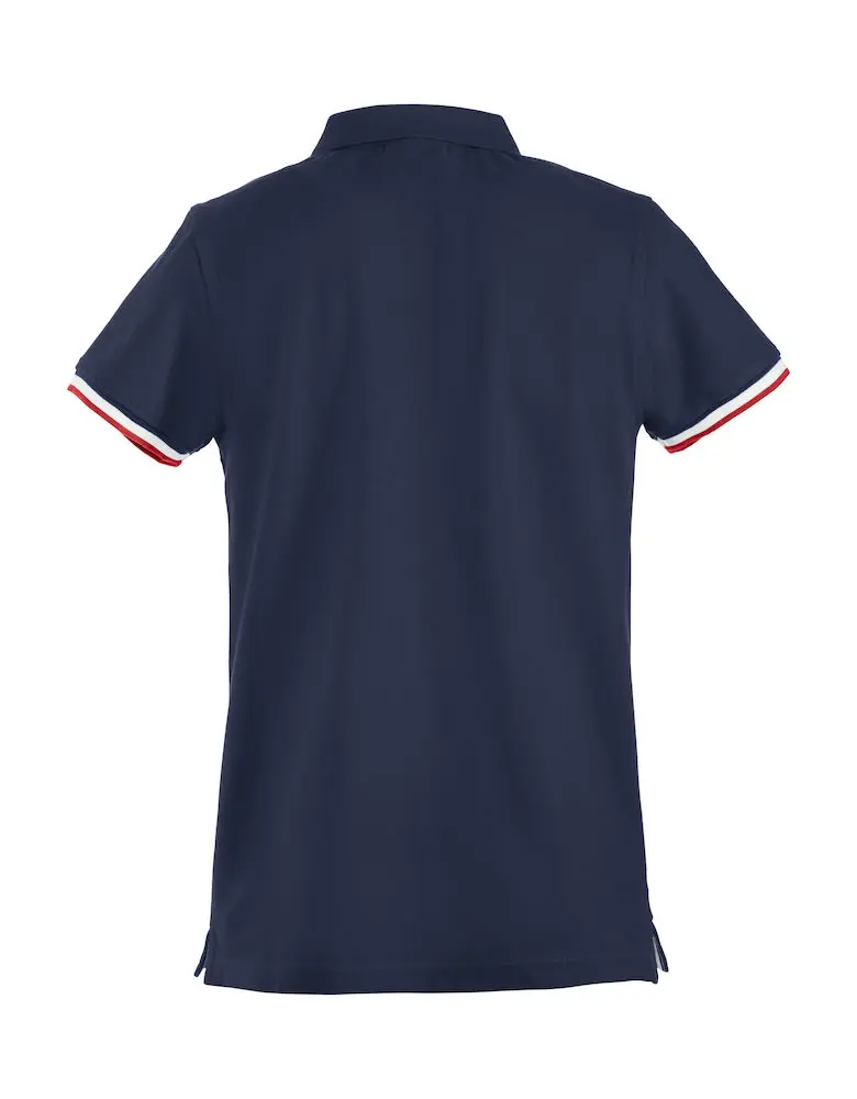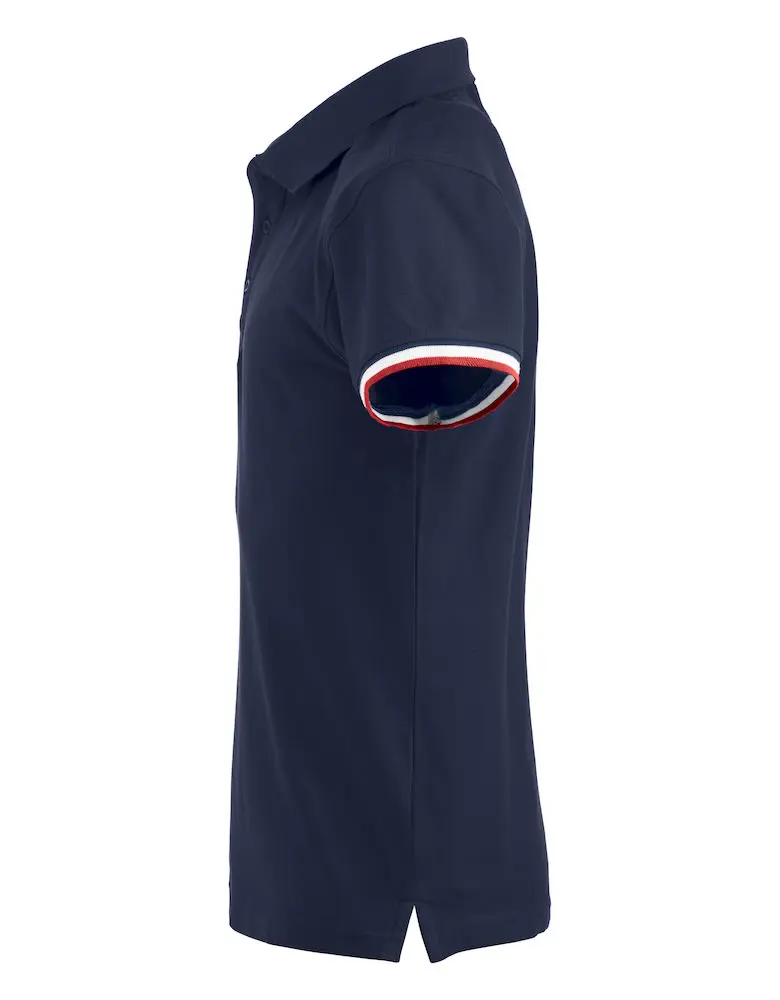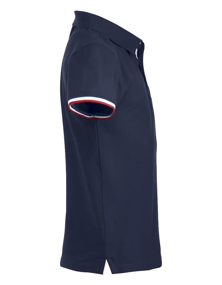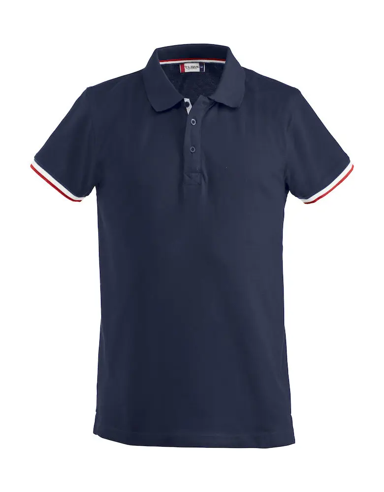 Clique Newton pikét-shirt. Trefärgad kontrast på undersida av krage, nackband och slits. 3 knappar.