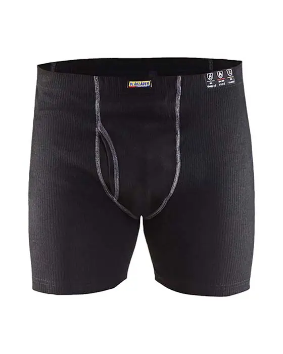 Blåkläder 1828 flamskyddad kalsong. Tillverkat i värme- och flamreaktivt material som stelnar vid hög värme och skapar ett permanent skydd.