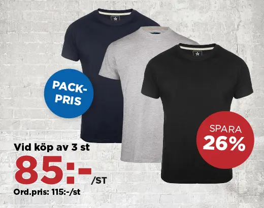 Pack-pris! Köp 3 st t-shirt TS13 från Texstar och betala endast 85 kr/st