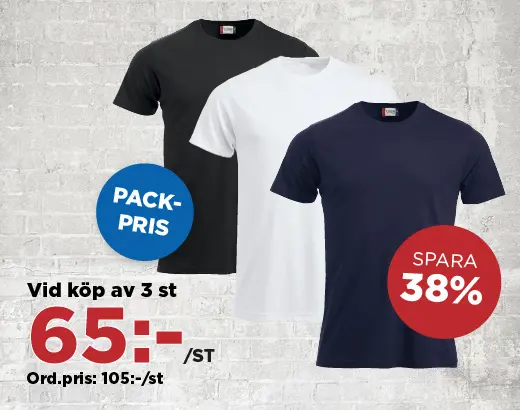Pack-pris! Köp 3 st t-shirt Clique Cassic T och betala endast 65:-/st.