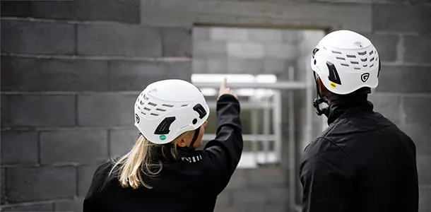 Här utsätts hjälmen ofta för tuffa miljöer med risk för fallande material och arbete på höjd. Viktiga egenskaper: